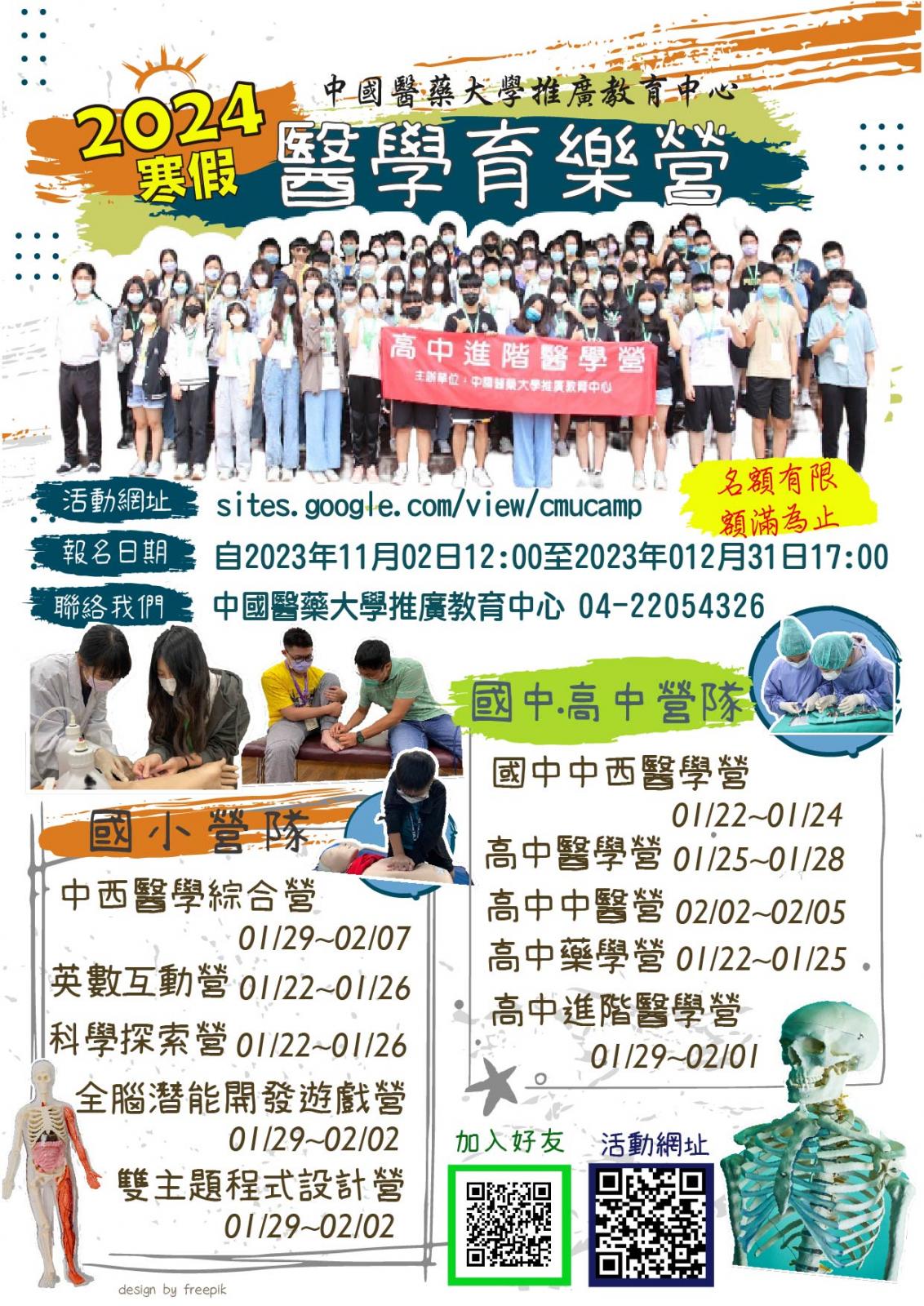 一、 2024 寒假醫學育樂體驗營活動開跑啦~不管你是小朋友還是大朋友,這裡的營隊都能滿足你。