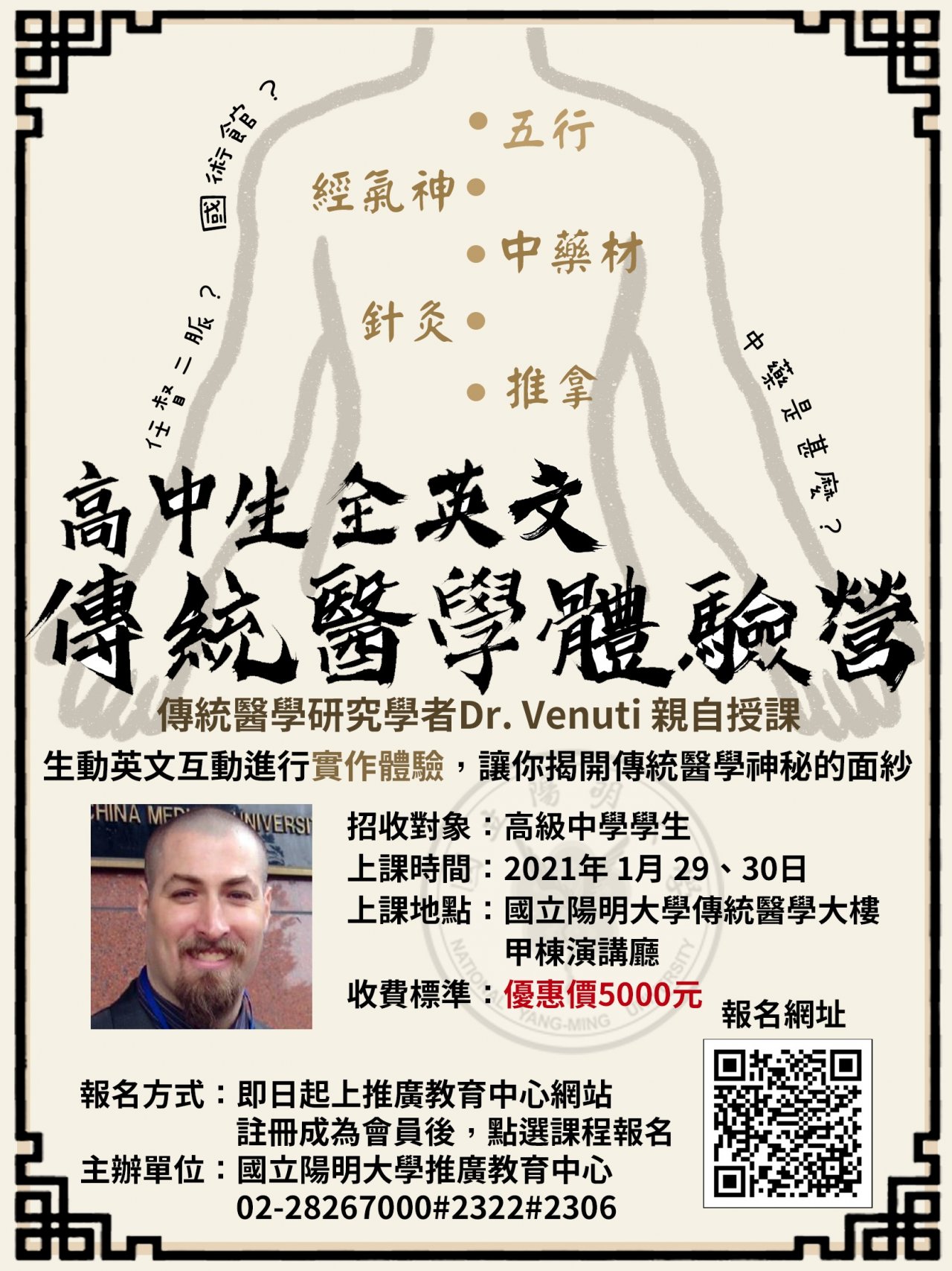 三、上課地點:國立陽明大學傳統醫學大樓甲棟演講廳。