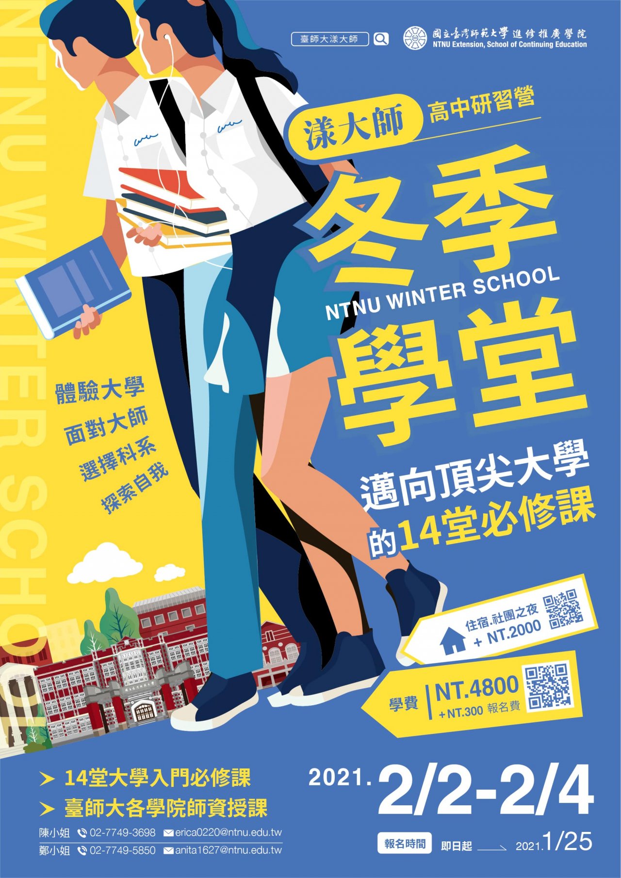 四、活動費用:學費 4,800 元及報名費 300 元,如需住宿費用為 2,000 元, 5 人團報學費享 8 折優惠。其他資訊詳見本校進修推廣學院-師大漾大師系列網站。