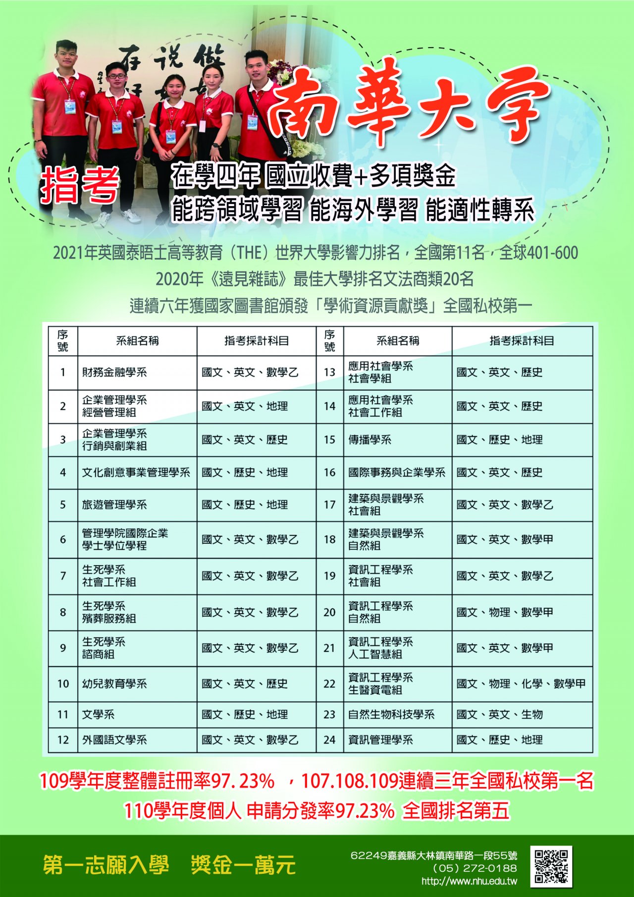 南華大學指考入學管道文宣