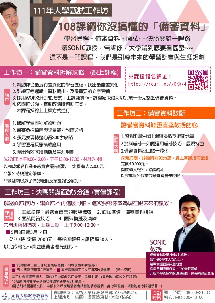 一、課程聯絡人:03-4638800 分機 2485 張雅雯小姐