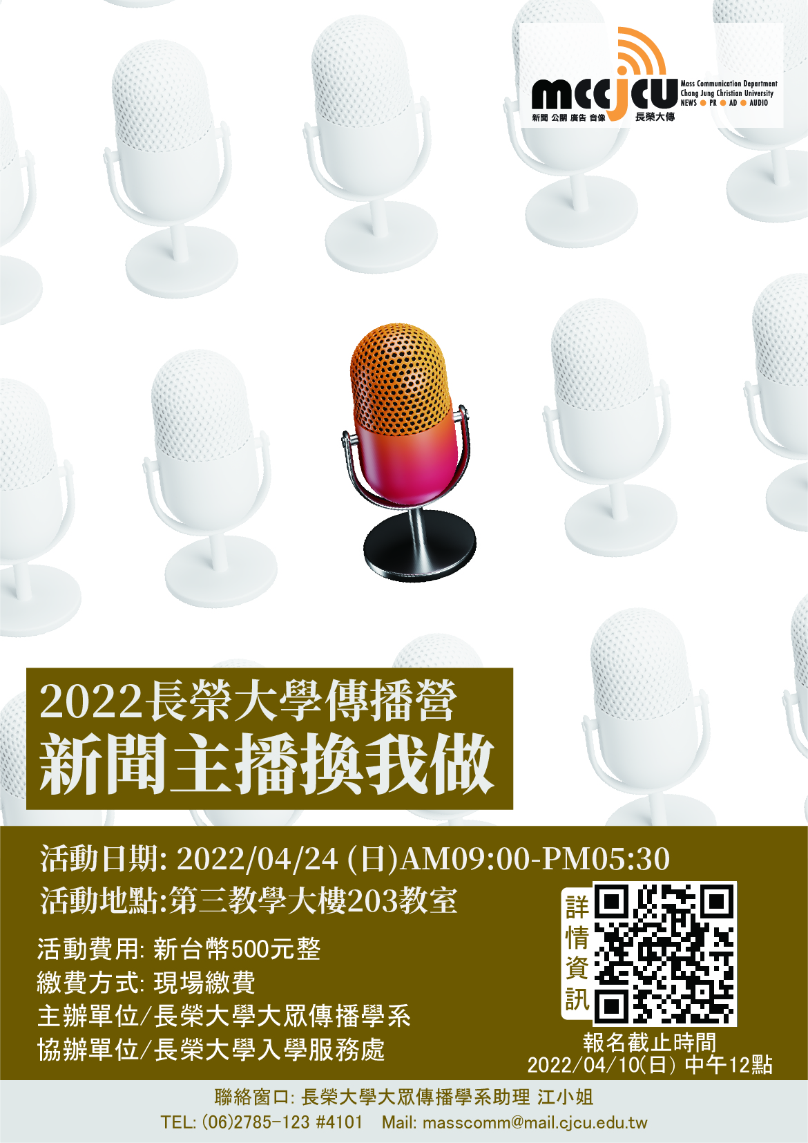 眾傳播學系於 2022 年 04 月 17 日(星期日)、 2022 年 04 月 23
