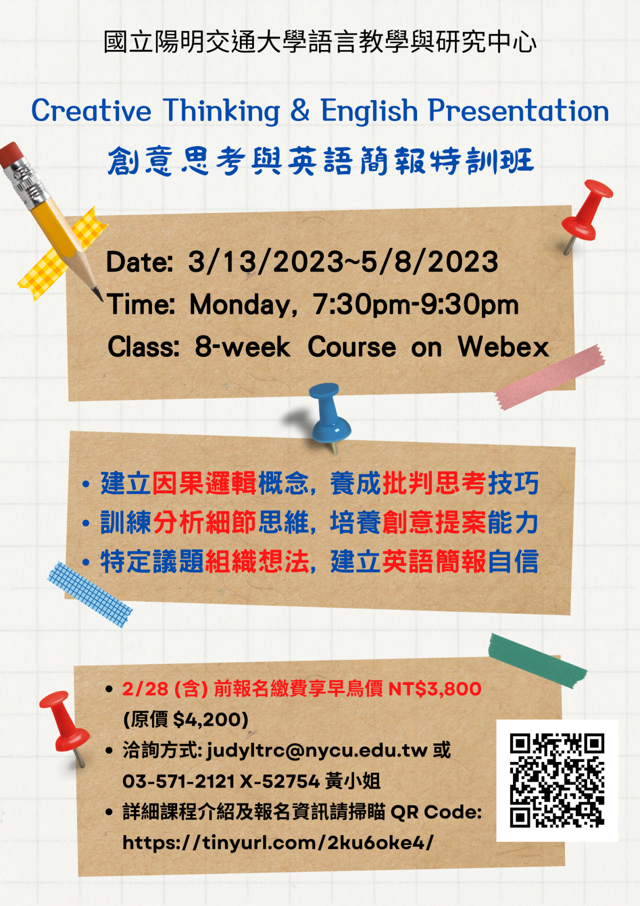 三、報名網址: https://ltrc.nycu.edu.tw/training/。