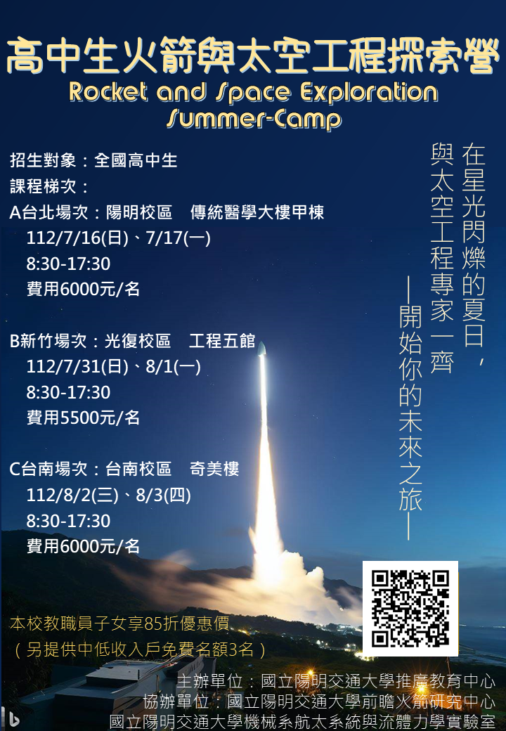 及「火箭與太空工程探索營」課程,希冀能夠啟發學員對
