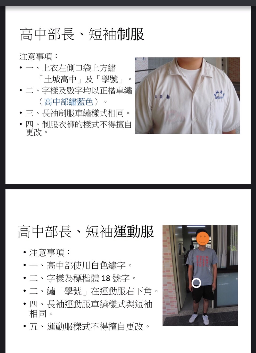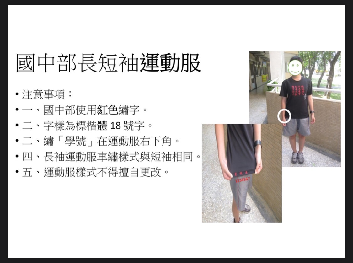 國中部、高中部制服繡學號範例圖示與說明,供新生參考。