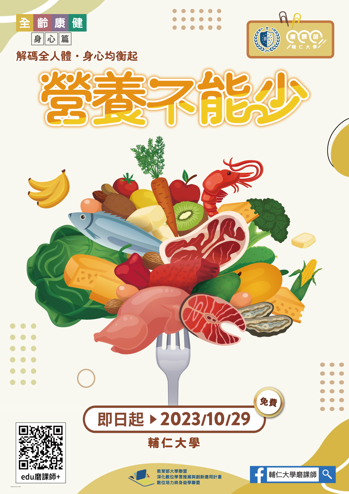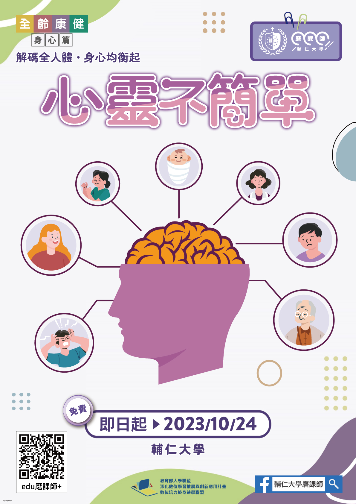 一、因應「大學聯盟深化數位學習推展與創新應用計畫-數位培力終身益學聯盟」所發展規劃之「全齡康健系列之身心篇:解碼全人體身心均衡起」系列課程。