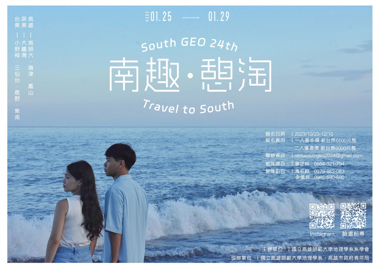 五、相關資訊將會更新於營隊官方網站及臉書粉絲專頁,官方網站: https://southgeo24.weebly.com/