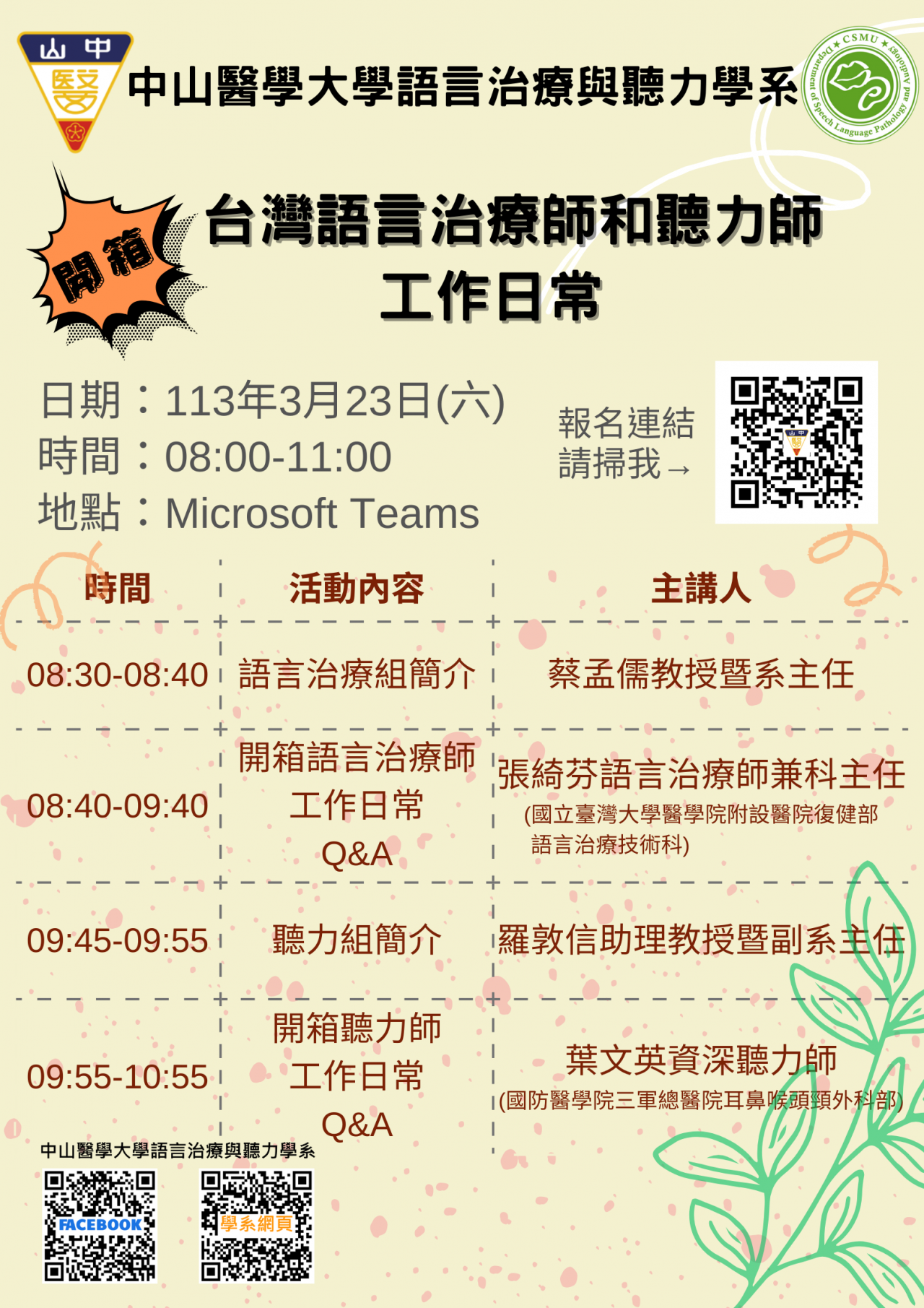 一、活動名稱:開箱台灣語言治療師和聽力師工作日常