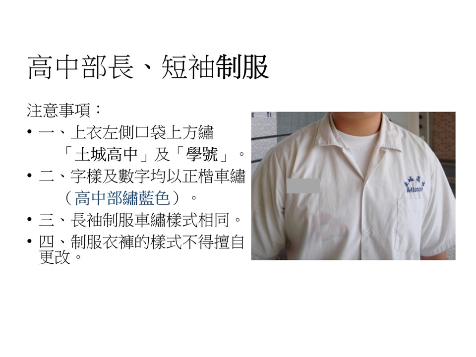 一、附檔為國高中服儀範例,請參閱。 二、若有疑問可以洽詢學務處。