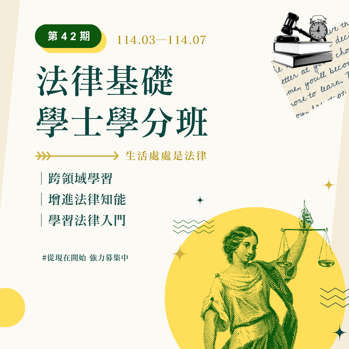 (二)招生科目:民法、勞動法、民事訴訟法、強制執行法、刑事訴訟法、消費者保護法、票據法、行政法、智慧財產權法、保險法、公司法。