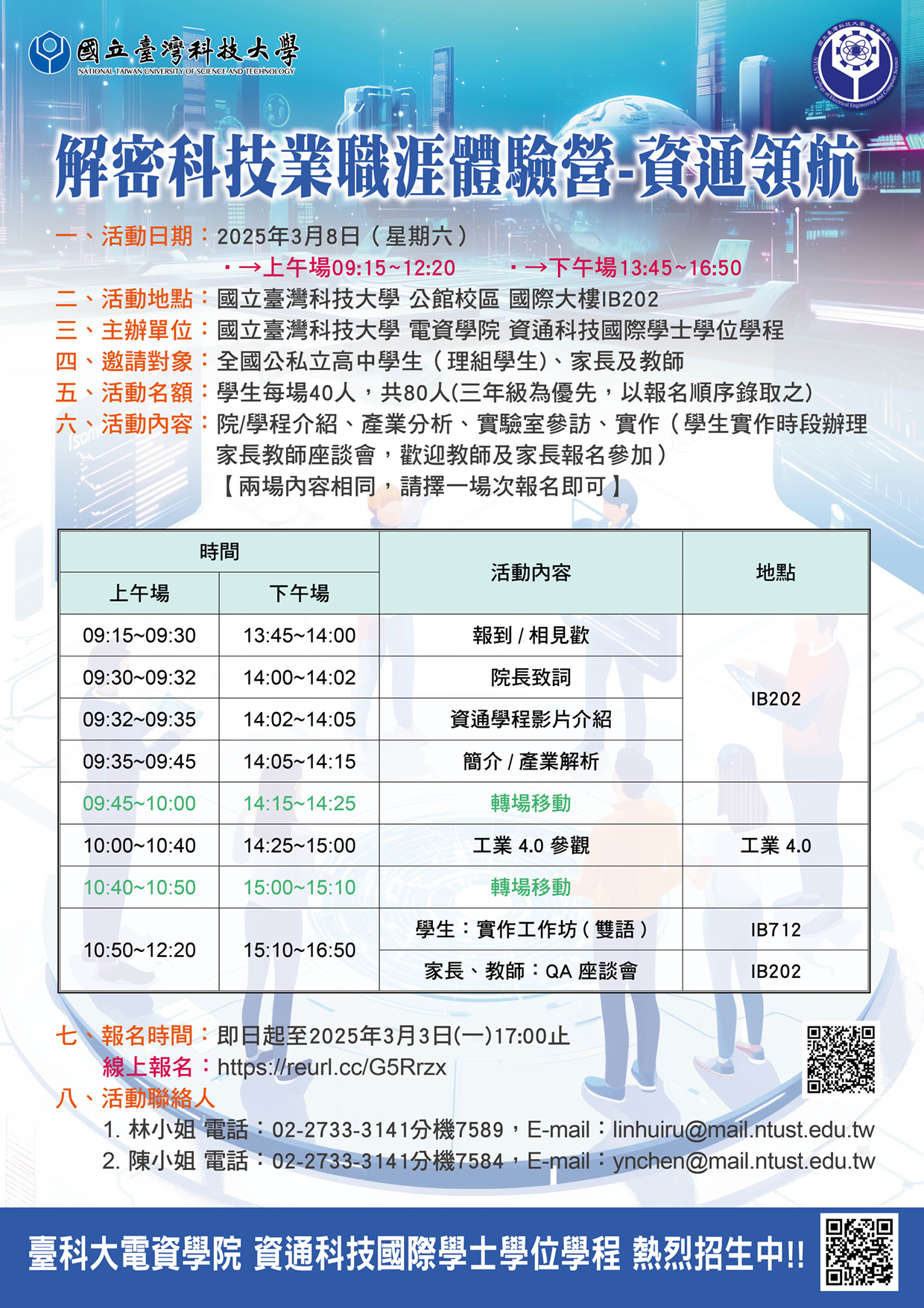 二、為協助學、家長、教師了解本學程之特色與規劃,於 114 年 3 月 8 日舉辦「解密科技業職涯體驗營_資通領航」。【兩場內容相同,請擇一場次報名參加即可】