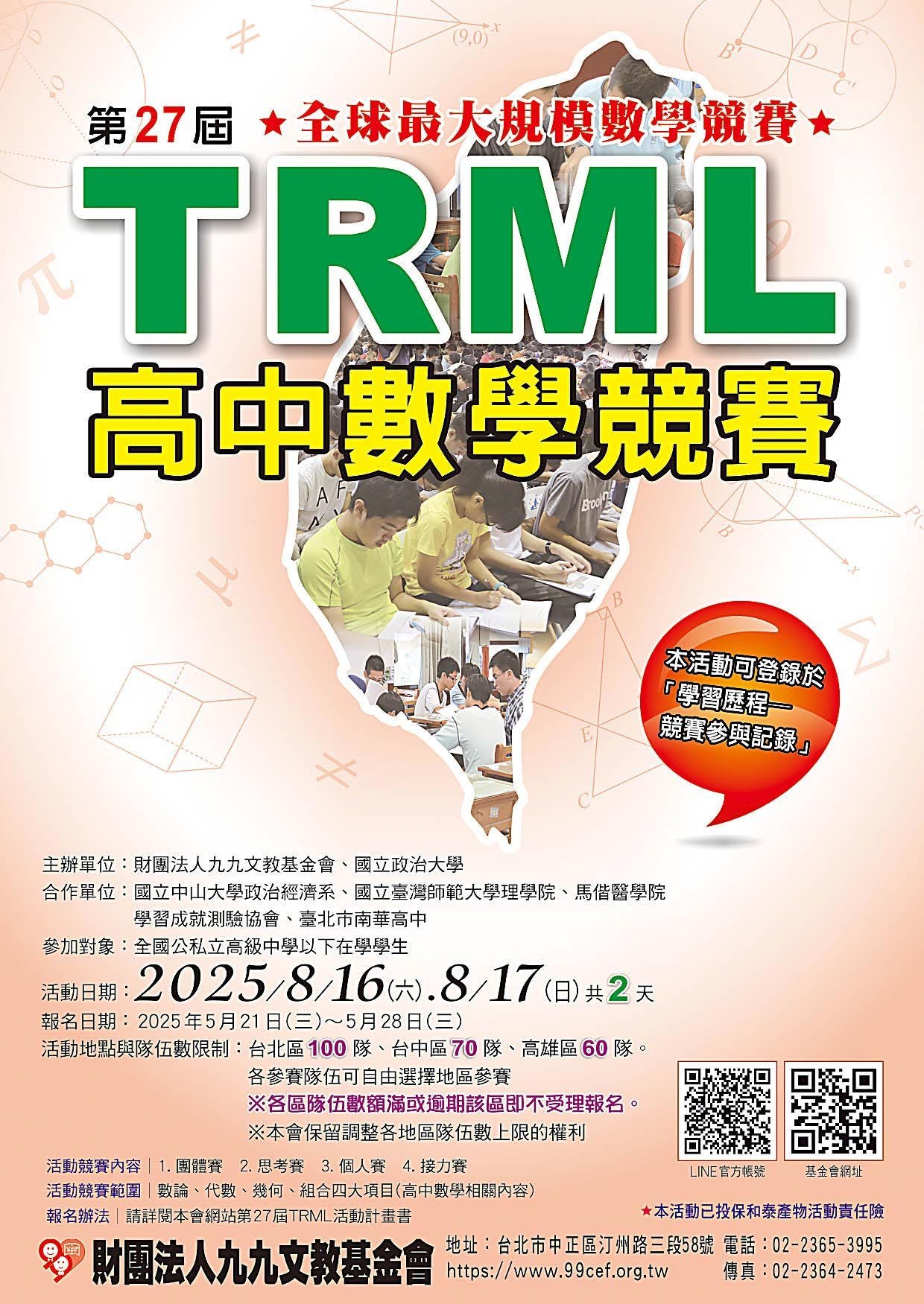 六、其餘詳細活動訊息及報名注意事項,請參閱活動計畫書或本會網站,本會網站網址: https://www.99cef.org.tw