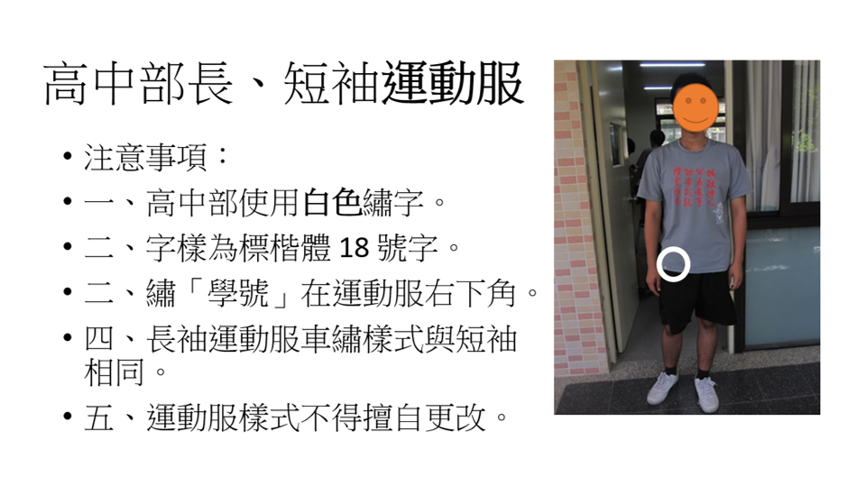 三、建議橘色外套可一併電繡自己的學號或名字,若發生遺失,可迅速找回自己的外套。