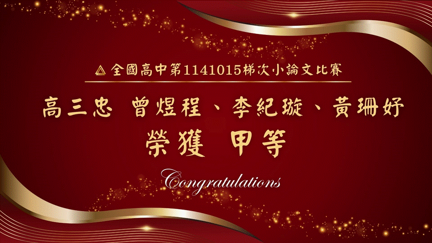 本校高三忠曾煜程、李紀璇、黃珊妤參加全國高中第1141015梯次小論文比賽,榮獲佳績。