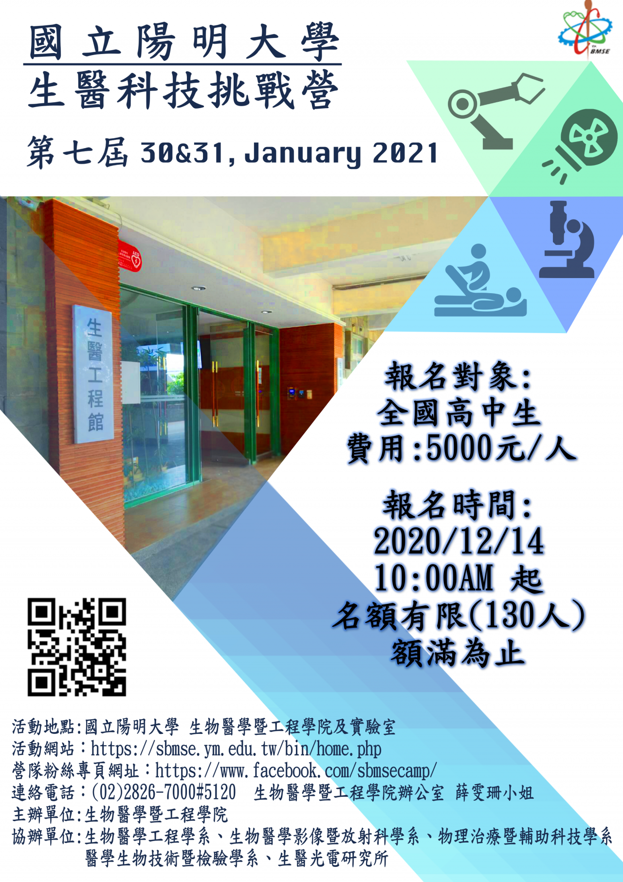 國立陽明大學生物醫學工程學院擬辦理之「2021生醫科技挑戰營」