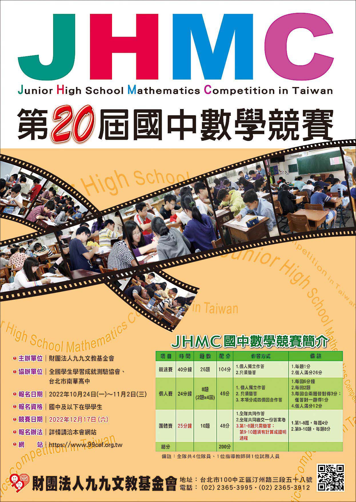 財團法人九九文教基金會舉辦第20屆JHMC國中數學競賽