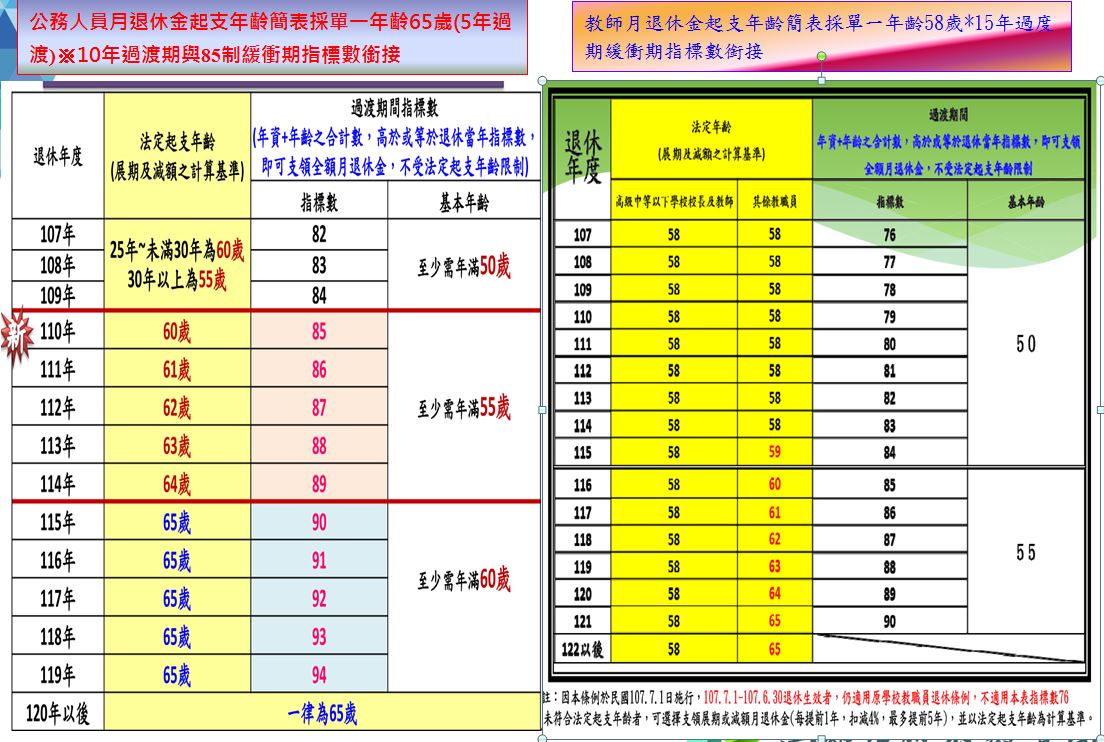 1.教師:年齡達50歲以上,指標數(年齡加年資)達79
