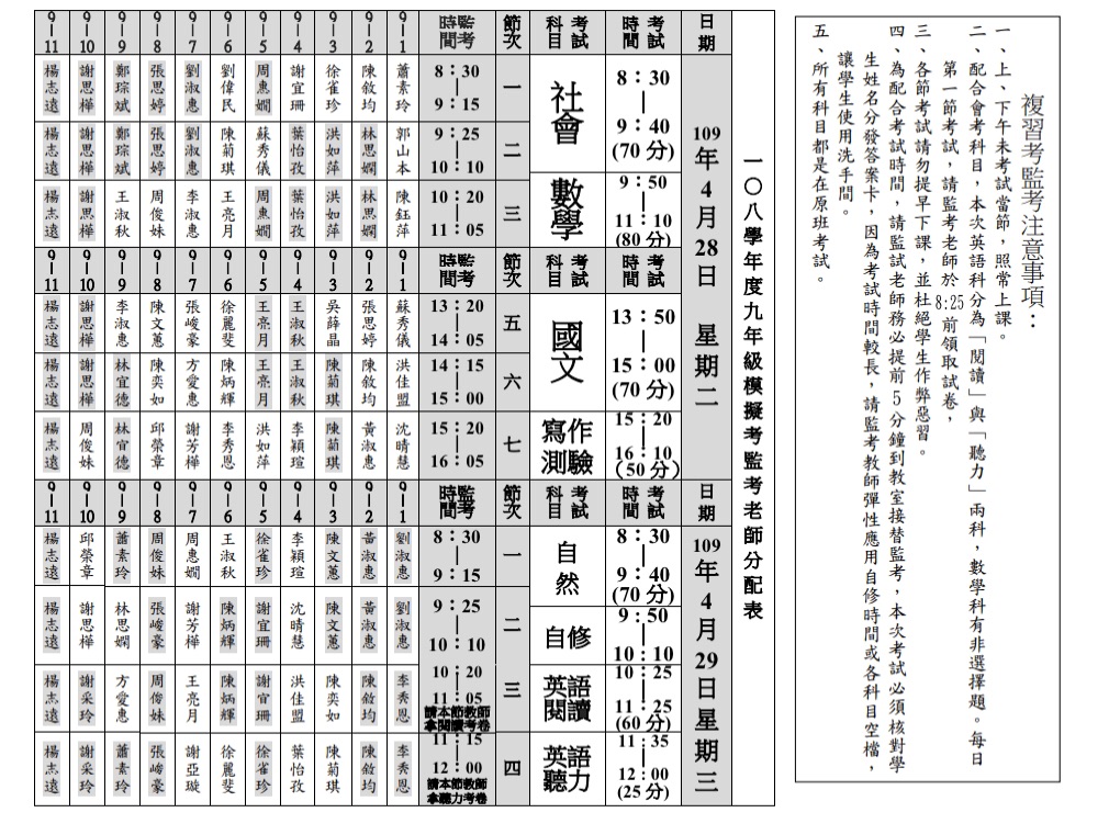 請各位老師、家長、同學們參閱附件,祝 試試順心。教務處敬上