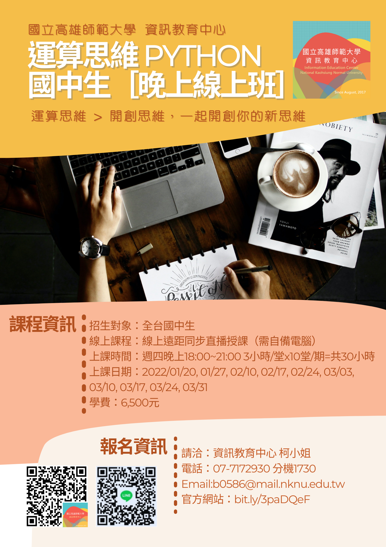 一、課程名稱:運算思維系列:Python課程【第1期】【國中】【線上班】。