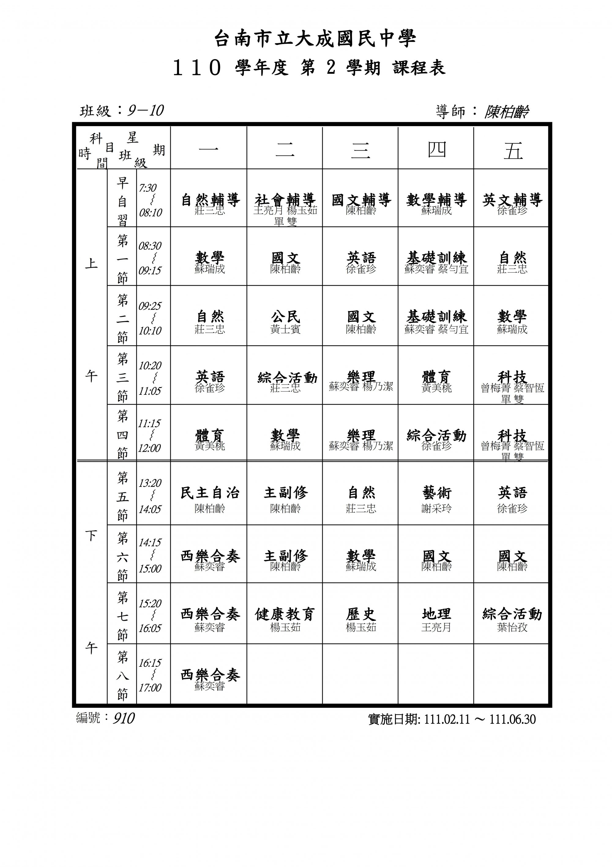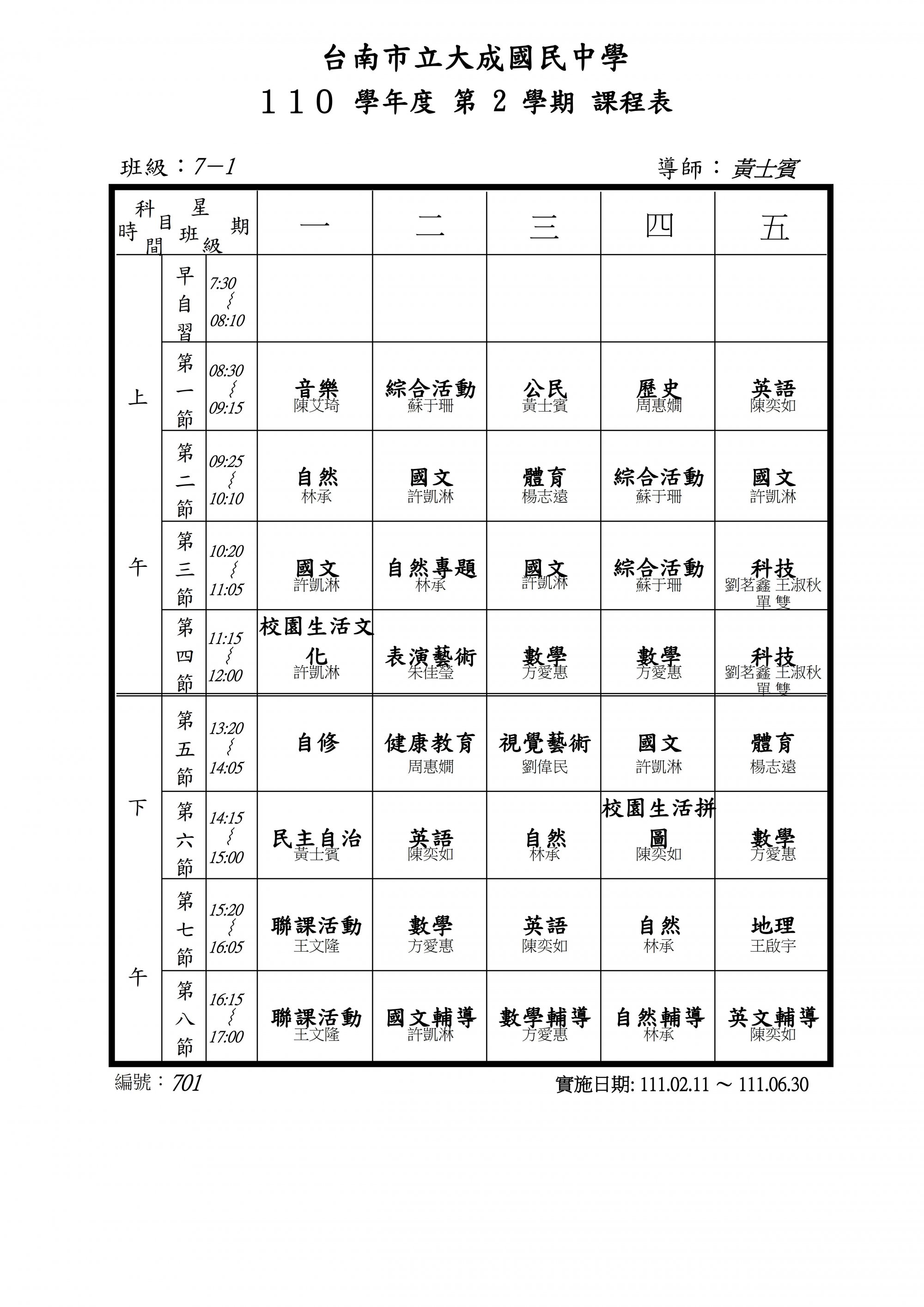 請至附件查詢當日課表