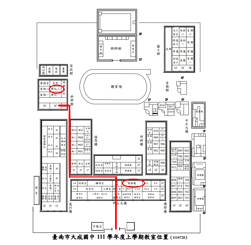 2.報到教室:大成國中科學館二樓,理化實驗室二(半張臉化石博物館),或可至教務處詢問。(已標示於附件校園配置圖)