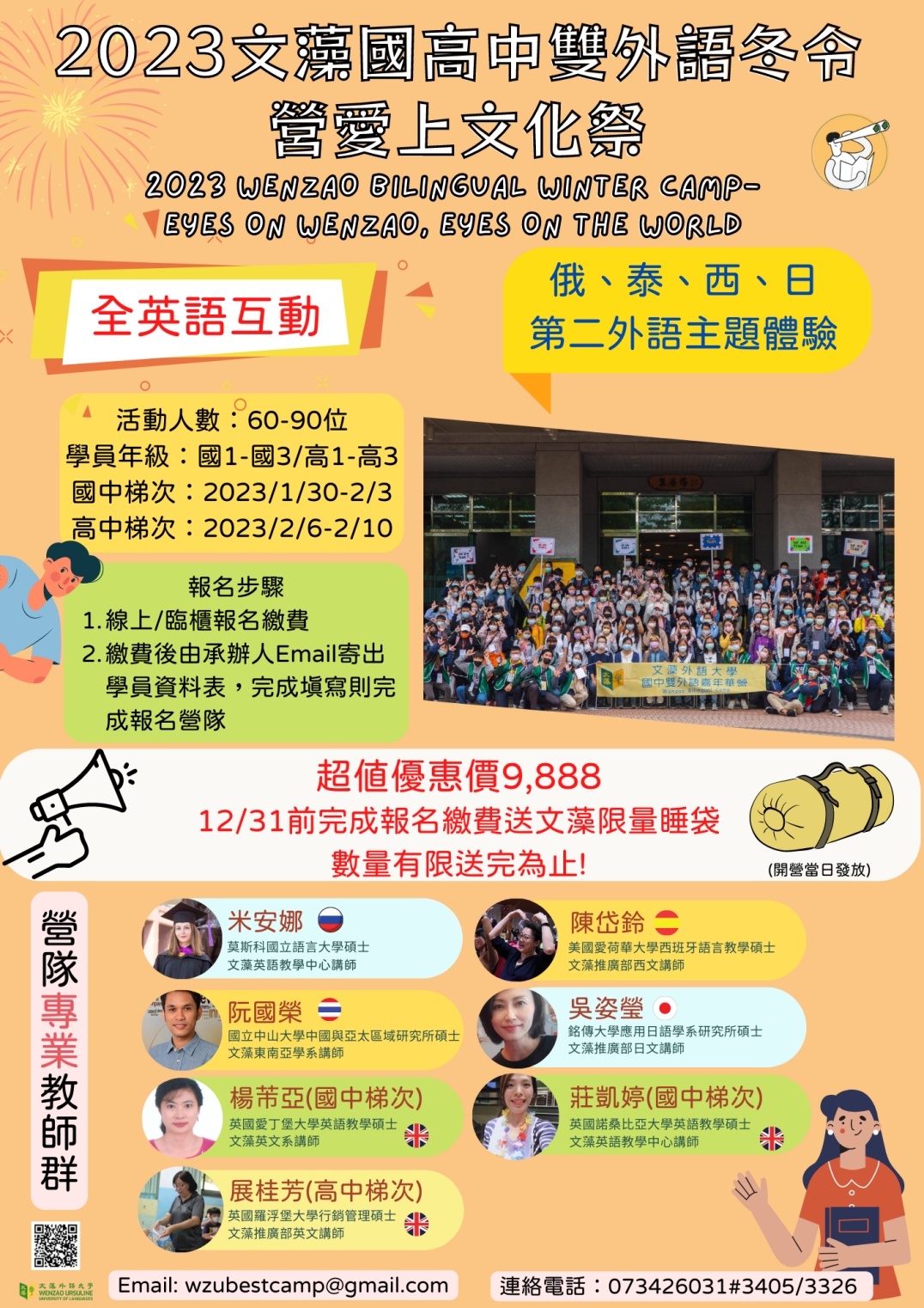 主旨:檢送本校辦理2023國中雙外語冬令營簡章(如附件),敬請協助公告。