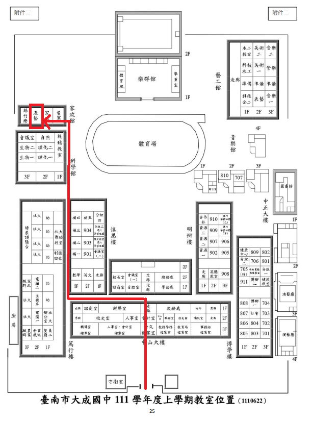 2.報到教室:大成國中家政館3樓,表演藝術教室,或可至教務處詢問。(已標示於附件校園配置圖)