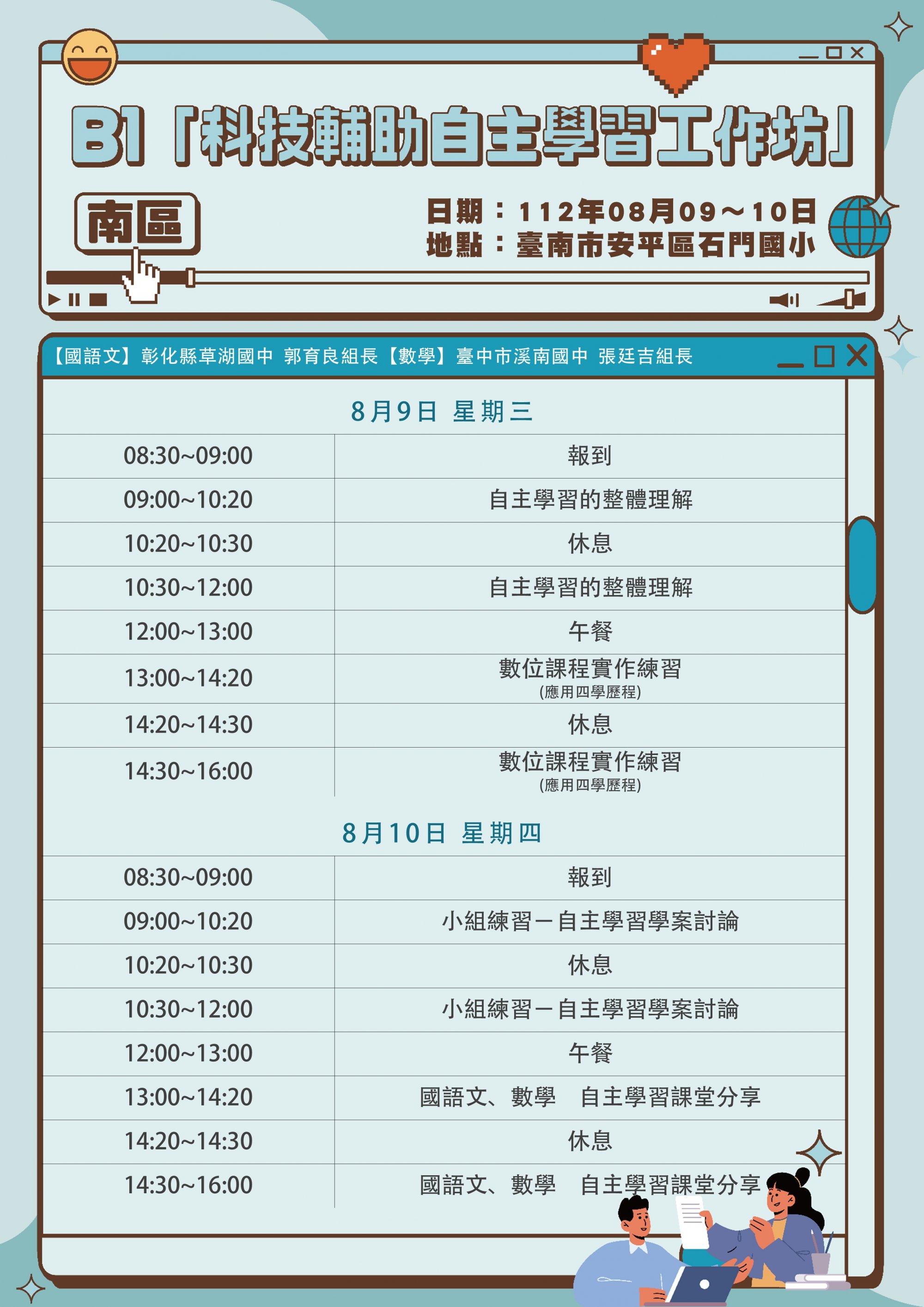 四、研習時間 :112年8月09日、8月10日,上午09 :00 至16 :00。