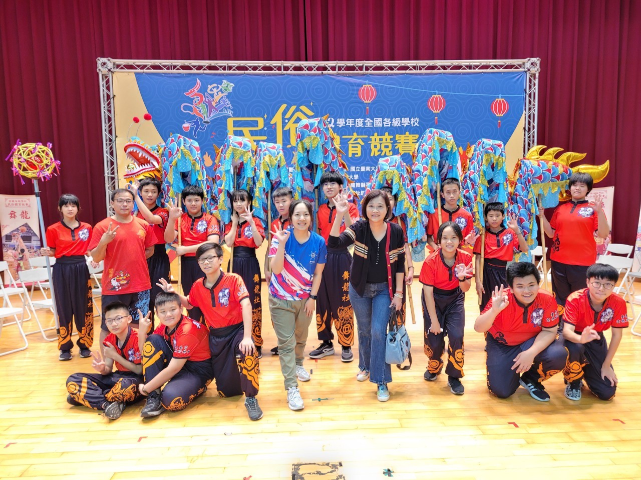 本校舞龍社參加教育部體育署112學年全國各級學校民俗體育競賽-競技舞龍混合國中組,榮獲全國【優等】。 感謝謝宗哲老師指導 校長陳惠文、家長會長呂宜真暨全體師生同賀。