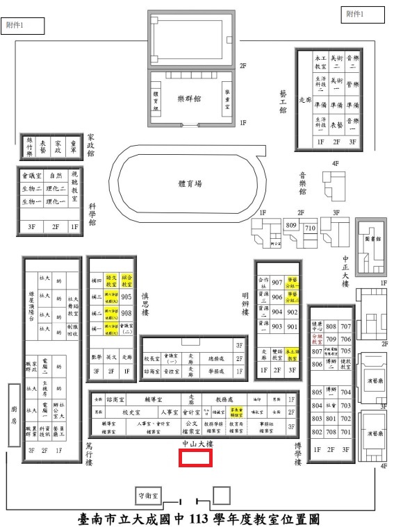 2. 請於8:10-8:30到中山大樓前集合(附件中紅框處),並自備球拍、毛巾、水壺、跳繩,可以多帶1-2件替換衣物及健保卡。