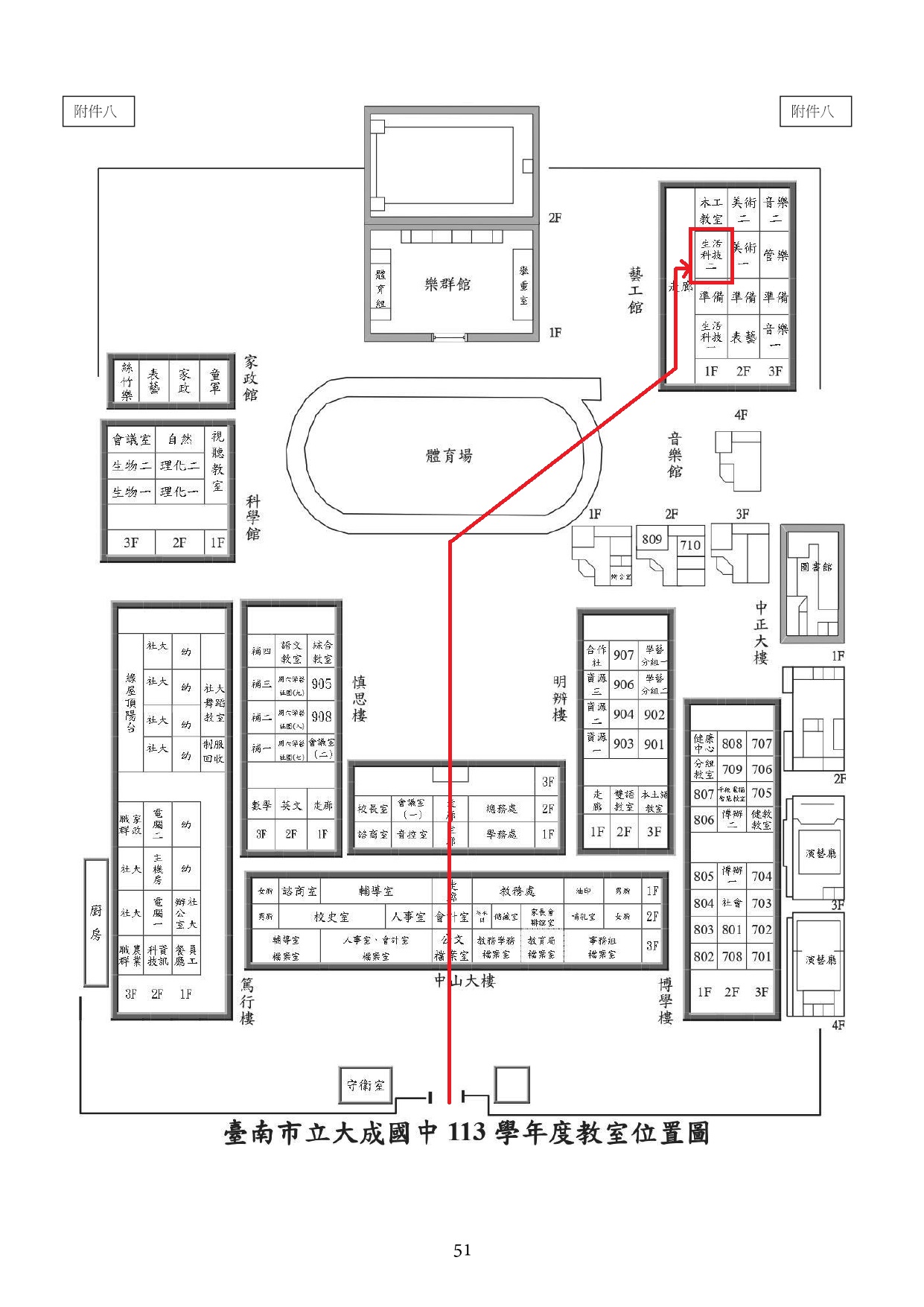 2.報到教室:大成國中藝工館一樓,生活科技教室二,或可至教務處詢問。(已標示於附件校園配置圖)