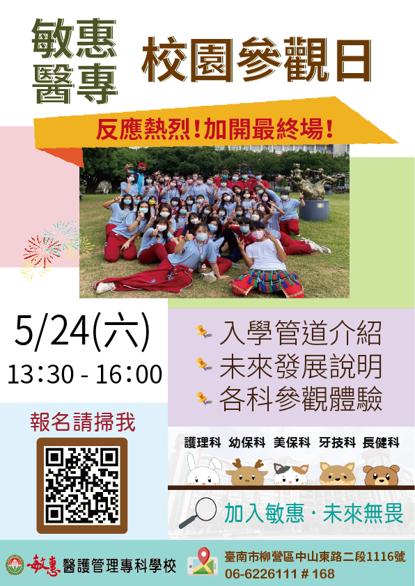 一、為使學生、家長了解入學管道及未來發展,本校舉辦校園參觀暨入學說明會。