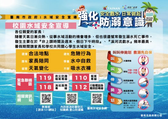 學務處在此呼籲小朋友注意水域安全,也請不要到危險的水域遊玩,並隨時注意自身安全喔!