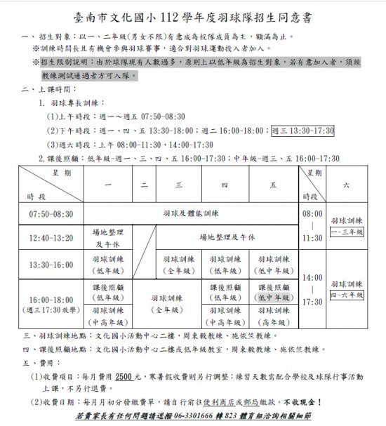 • 低年級:每週一、三、四、五下午 12:40-16:00週二 16:00-17:30