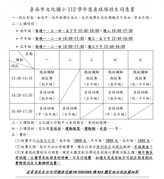 詳細招生訊息請參閱附件內容或逕洽學務處體育組鄭老師, 06-3301666#823