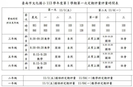 ⛈️113/10/31 週四颱風來襲,停止上班上課,原定期評量日期調整如下表,請小朋友們預作準備。