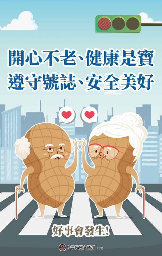 交通安全教育宣導:「開心不老、健康是寶,遵守號誌、安全美好」
