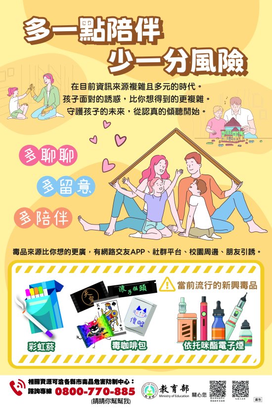 防制藥物濫用宣導:轉教育部製作 114 年防制學生藥物濫用電子文宣-海報 8 張