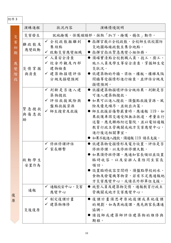 宣導:國家防災日各級學校及幼兒園地震避難掩護演練流程及注意事項