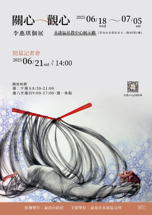 (三)開幕記者會: 114 年 6 月 21 日(星期六)下午 2 時,現場將由藝術家親自導覽作品,分享其創作經驗。