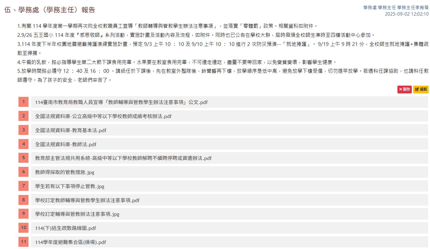 公告 學務主任李菀蓓 - 學務處公告 | 2025-09-19 | 點閱數: 93