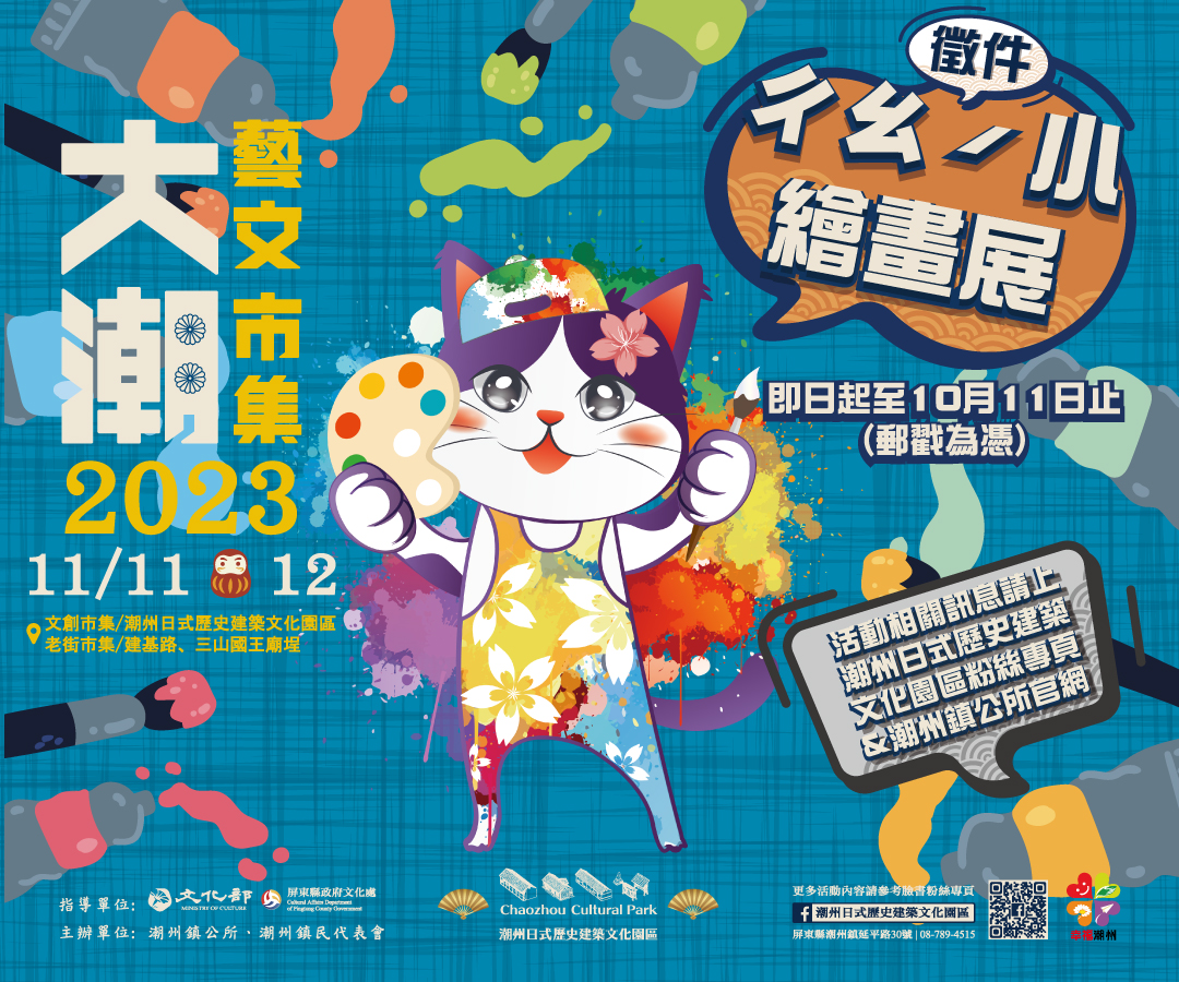 一、本活動為配合潮州日式歷史建築文化園區-2023 年大潮祭舉辦「ㄔㄠˊ小繪畫展」繪畫創作比賽,透過學童的觀察視角,以畫筆彩繪小鎮人文風情、在地風光。