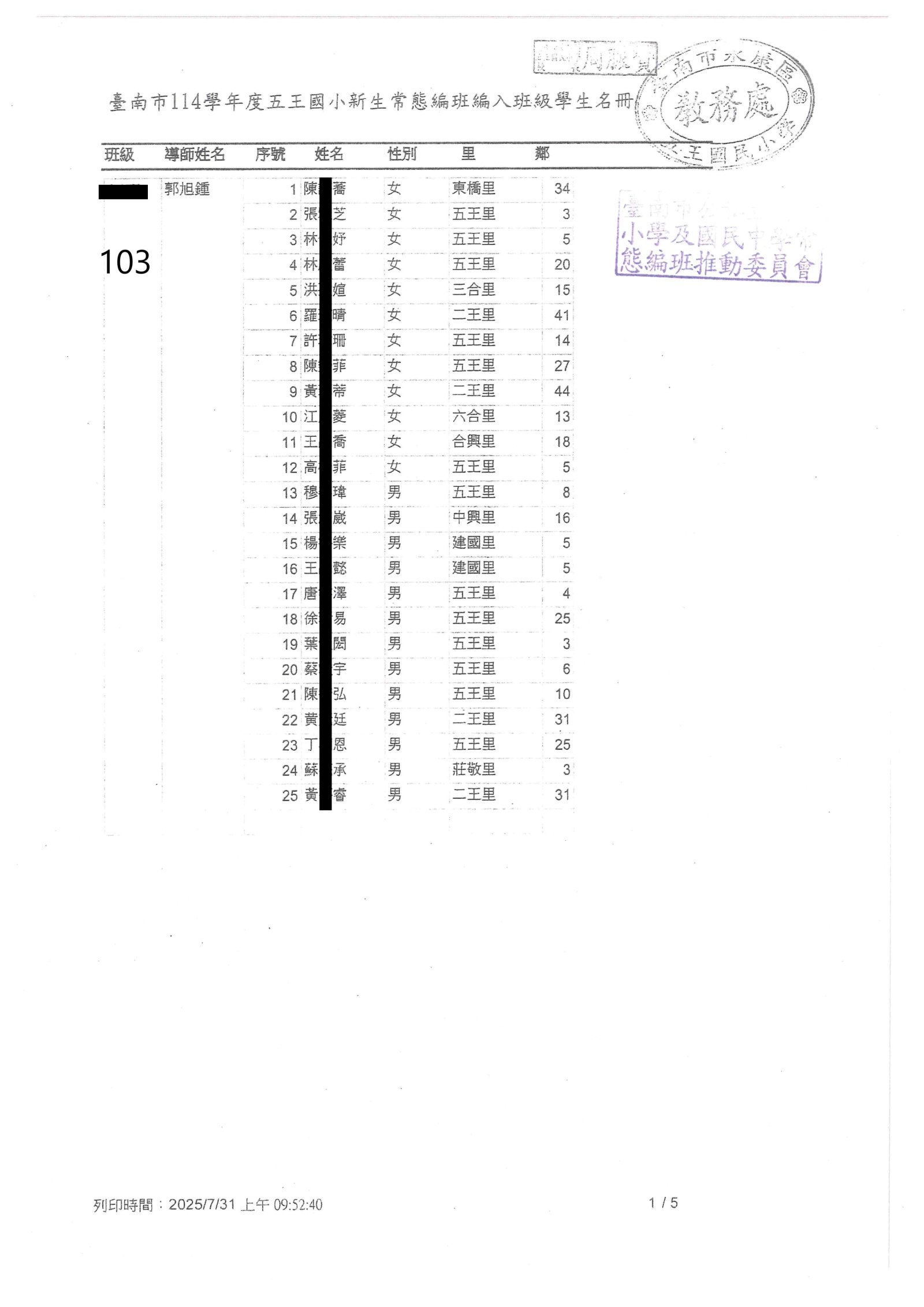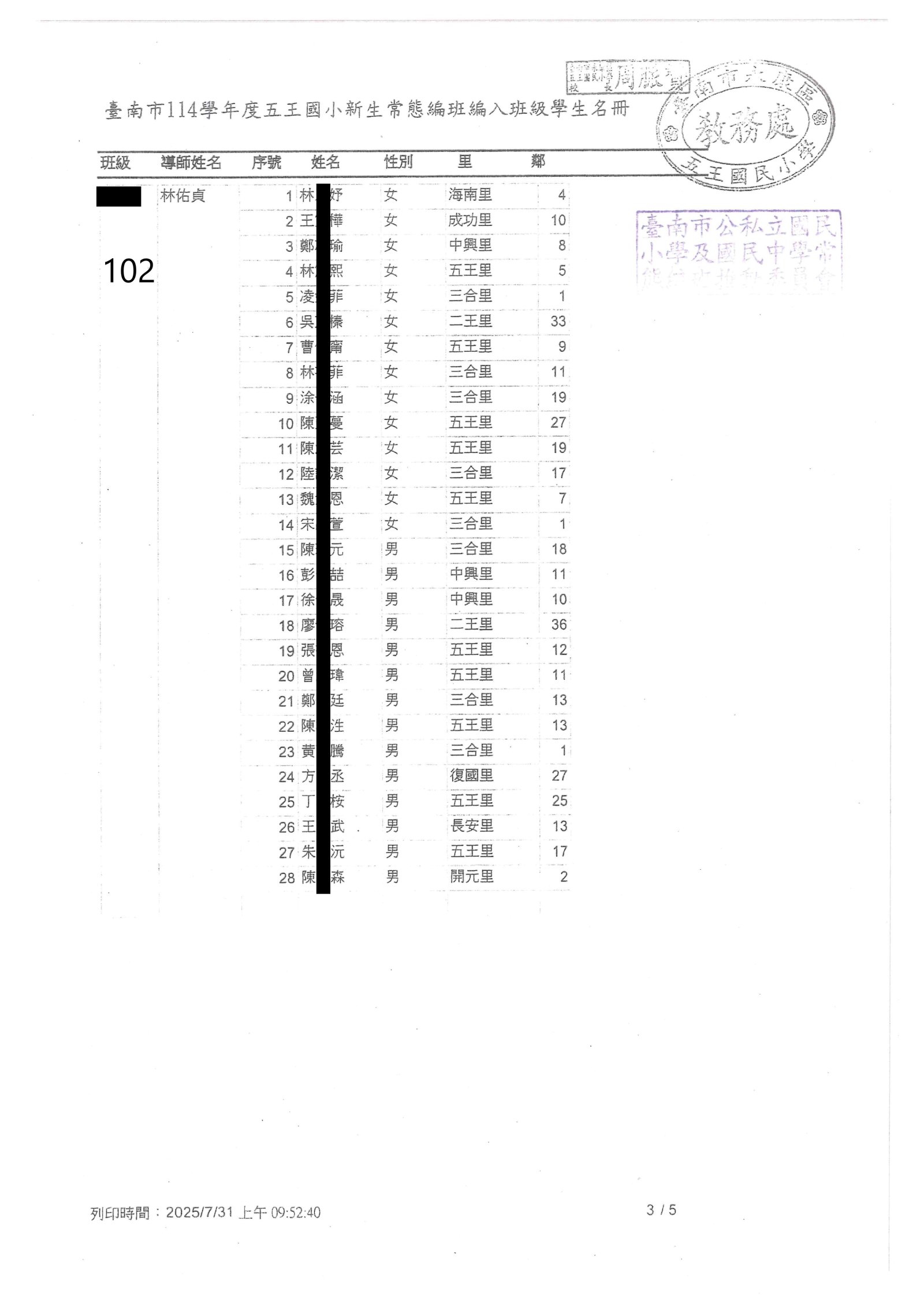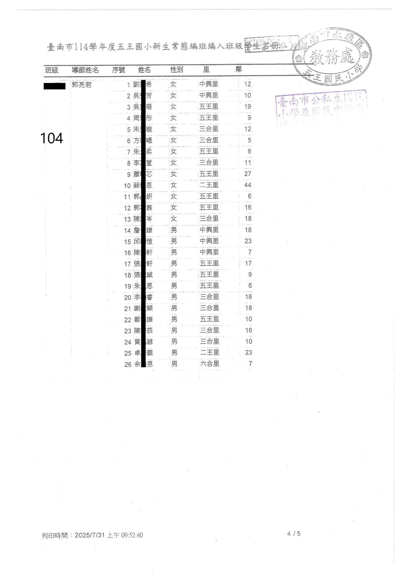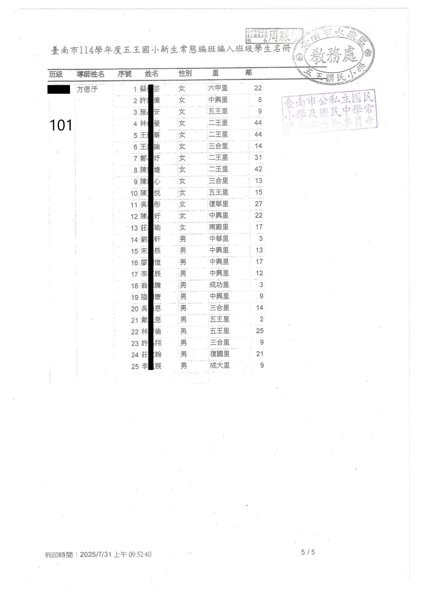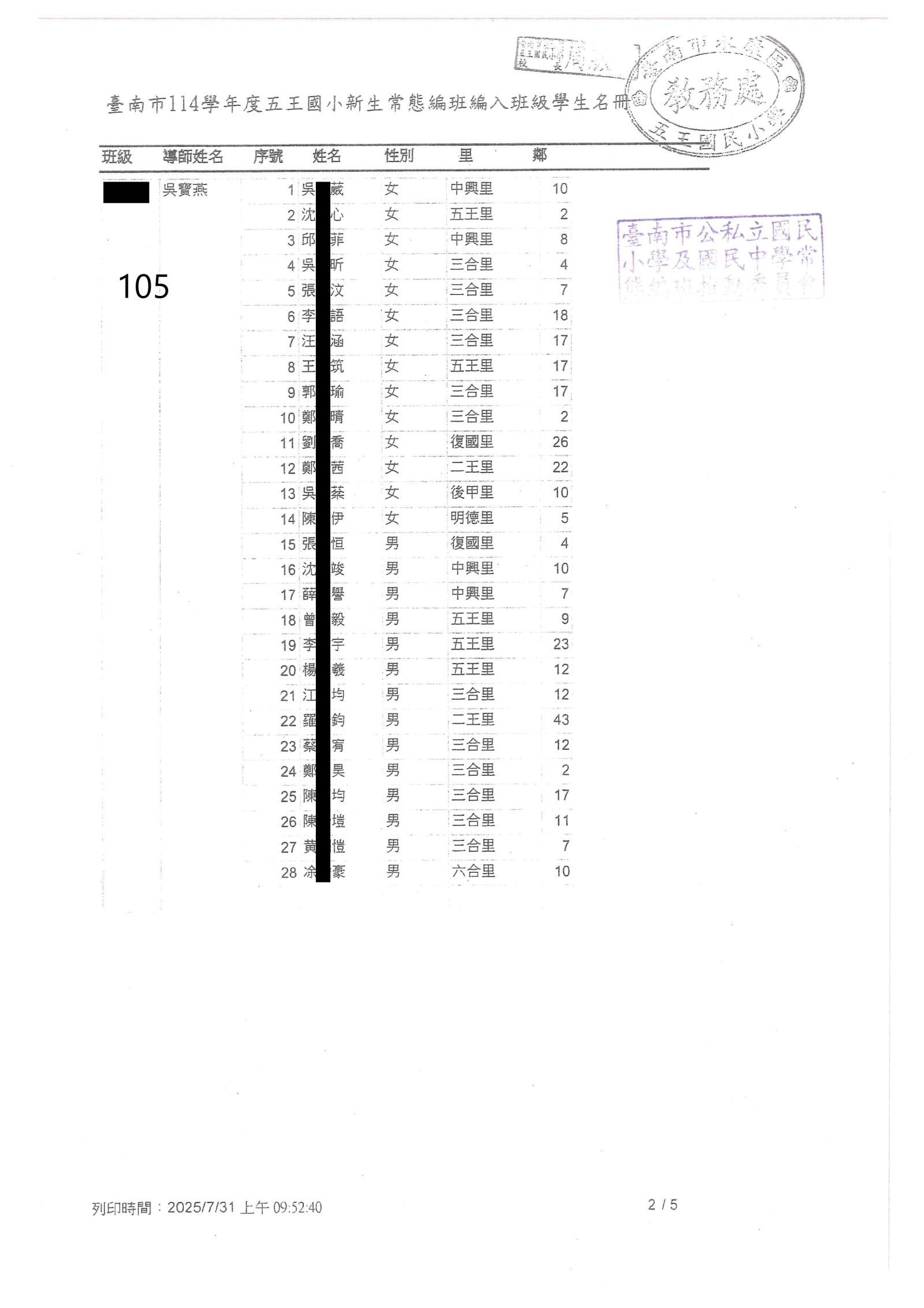 | 2025-12-29 重要 115學年度臺南市國民小學學區一覽表(本校共同學區新增六合里) |