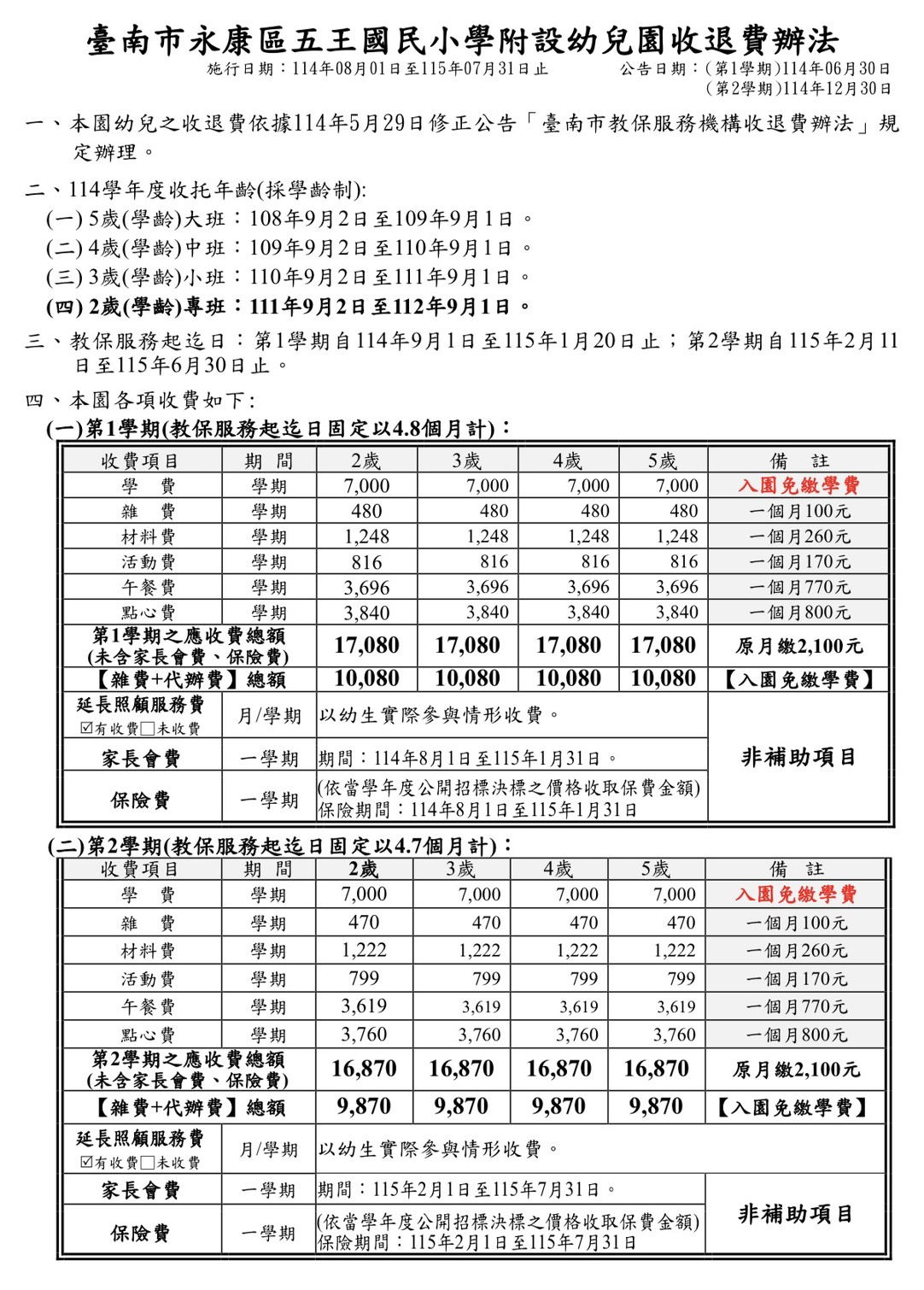 | 2025-06-17 重要 臺南市五王國小114學年小一迎新暨家長座談會活動將於114年8月30日辦理 |