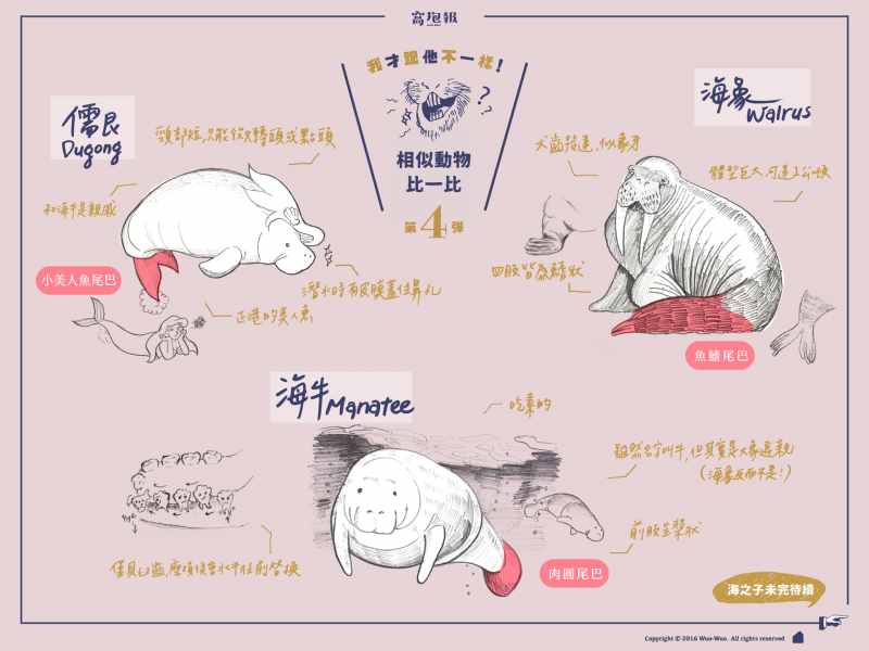 引用自https://wuo-wuo.com/topics/widlife/64-comparison-and-similar-animals/640-i-was-with-him-is-not-the-same-walruses-manatees-dugongs