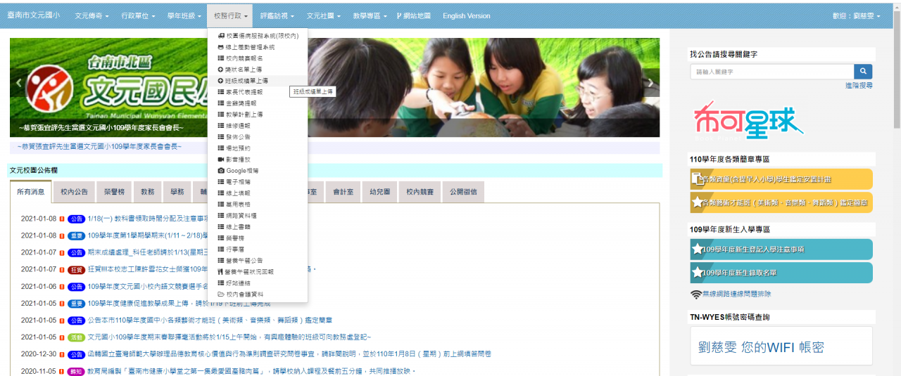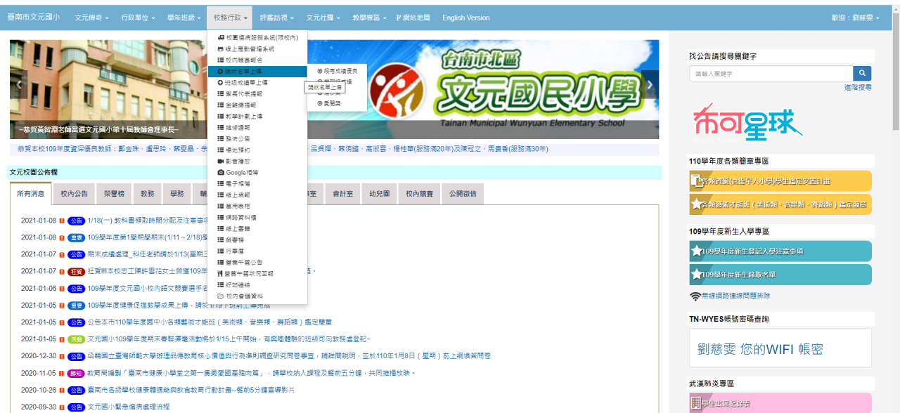 填報路徑:首頁→(上方)校務行政→班級成績單上傳。