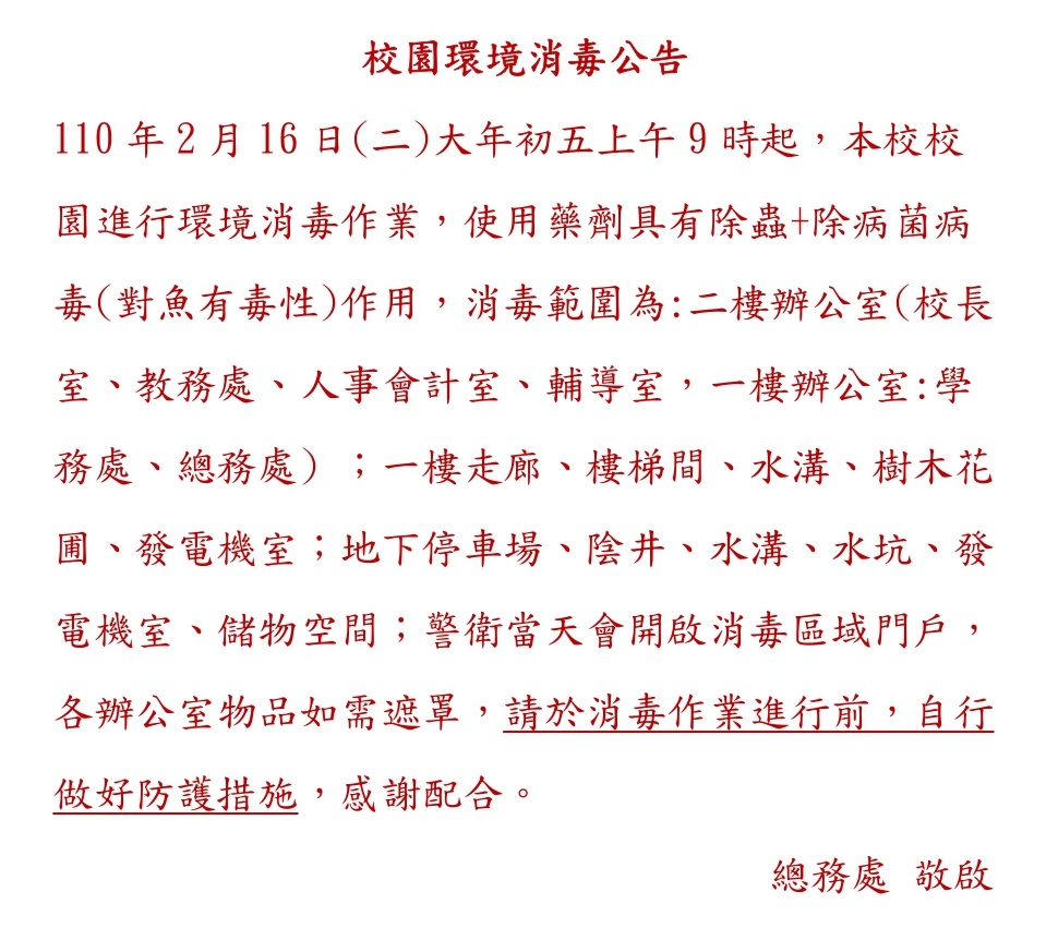 公告 廖千淞 - 總務 | 2021-02-05 | 點閱數: 894
