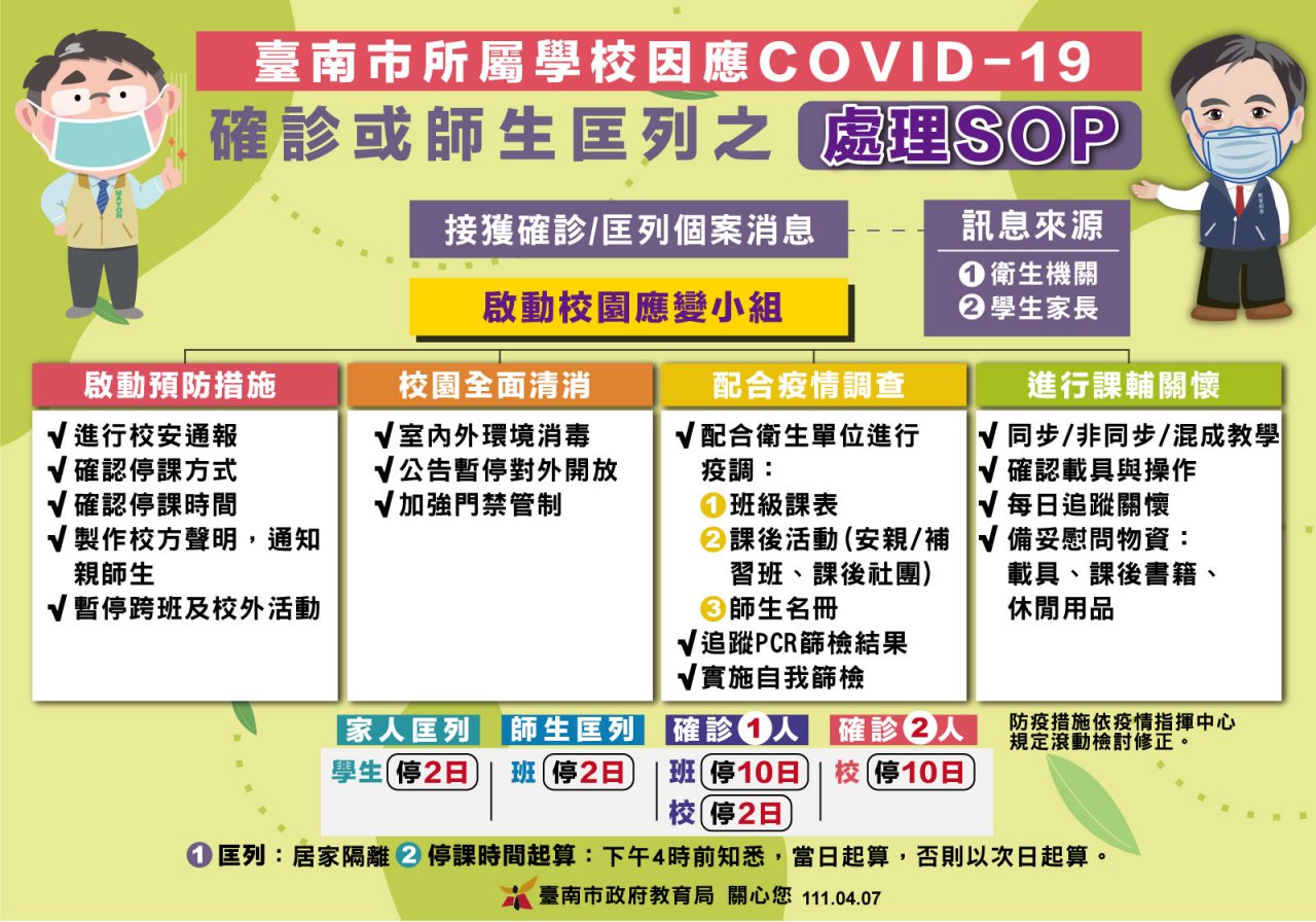 2.本校依規定進行該班預防性停課,停課期間為 4 月 9 日、 4 月 10 日兩日,並於 4 月 11 日(ㄧ)復課。