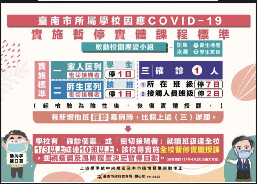 公告文元國小因應疫情給家長的一封信,並附上現行停課標準。