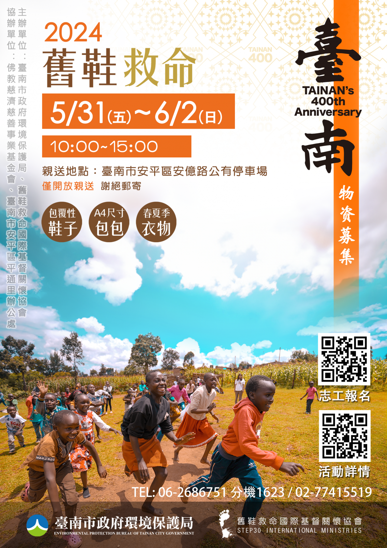三、如有疑問可洽詢環保局 06-2686751 分機 1623 或舊鞋救命國際基督關懷協會 02-77415519